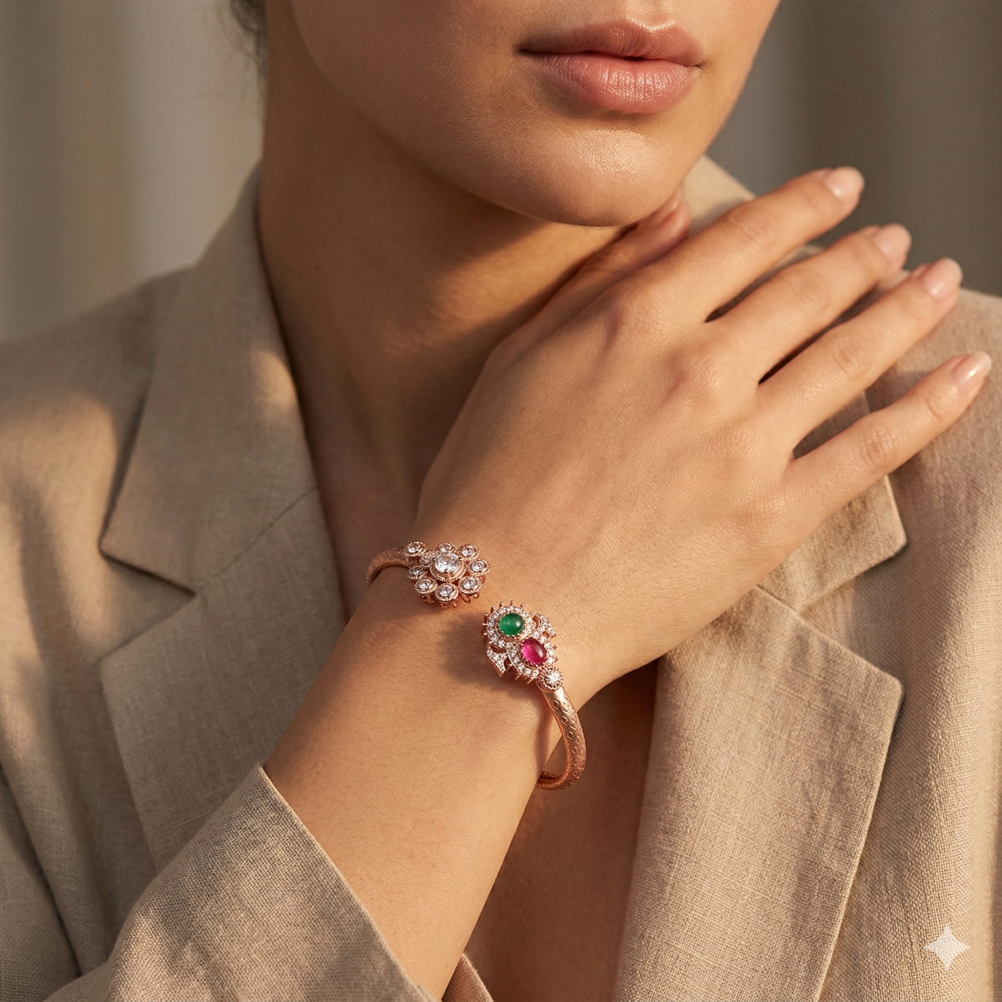CZ (0.420gm), Red (0.900ct), Green (0.560ct)